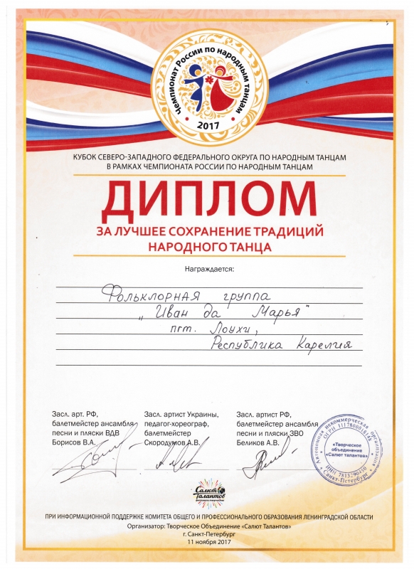 Ансамбль народного танца «Иван да Марья», является творческим коллективом, ориентированным на сохранение и возрождение традиционной карельской культуры, передачи её подрастающему поколению.