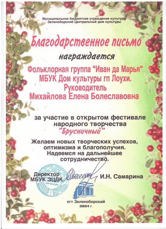Муниципальное бюджетное учреждение "ЛОУХСКИЙ ДОМ КУЛЬТУРЫ" Лоухского городского поселения